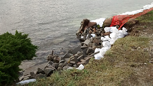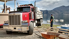 One of our neighbours was able to secure some rip rap rock that was left over from when Summerland had to protect one of their roads. The next day we had two dump trucks worth of the rock put along the shore where the erosion was happening.