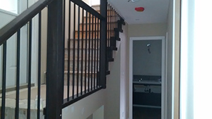 The lake level has started to drop so we felt that we could proceed with getting the house finished. At this point much of the finishing has been done. This includes interior railing,