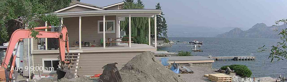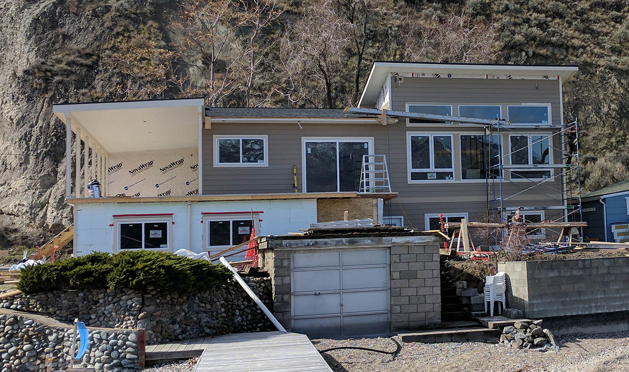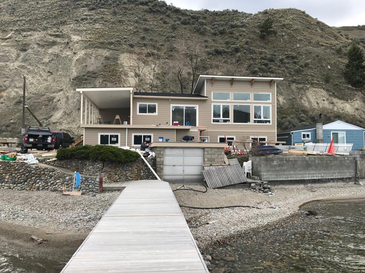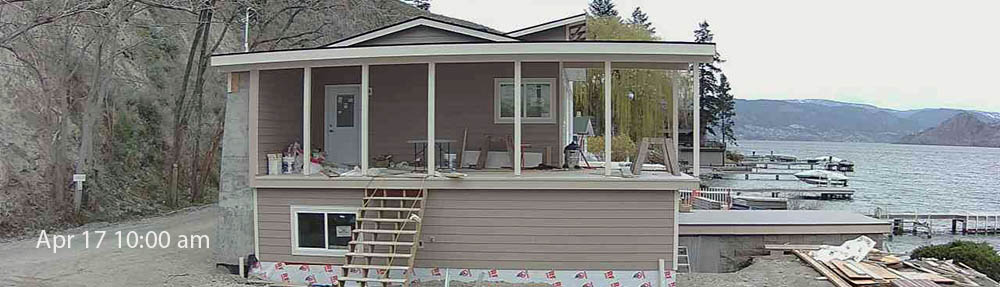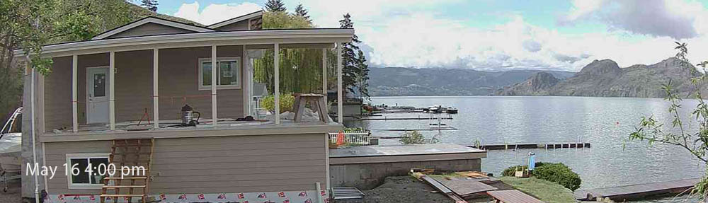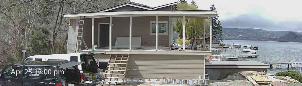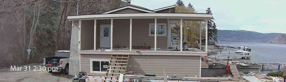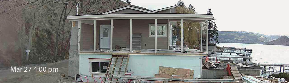 It has been a very long time since the last update. The primary reason is because of the Okanagan Lake flood. Most of the work stopped as we watch the lake rise to a level which was 77cm above its normal max. For a while it appeared that the water table could get high enough to cause water to enter the lower floor, fortunately it never got that high. For the last 6 weeks all of our energy has been going into trying to preserve our wharf and our property. One storm dislodged about 38 feet of our wharf from the pilings and it ended up at a neighbour’s beach. The piece that was removed was the part that attached to the shore so we now have an island only accessible by boat or swimming.