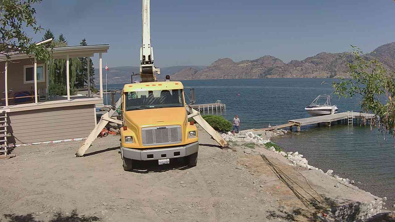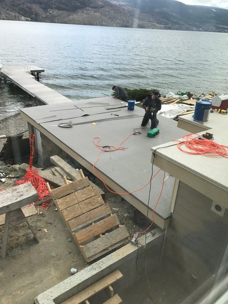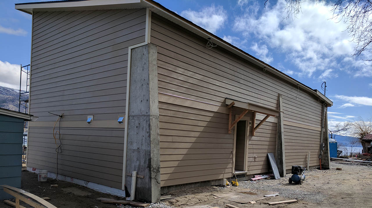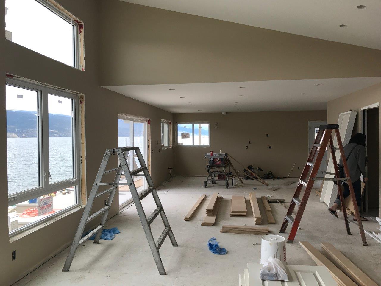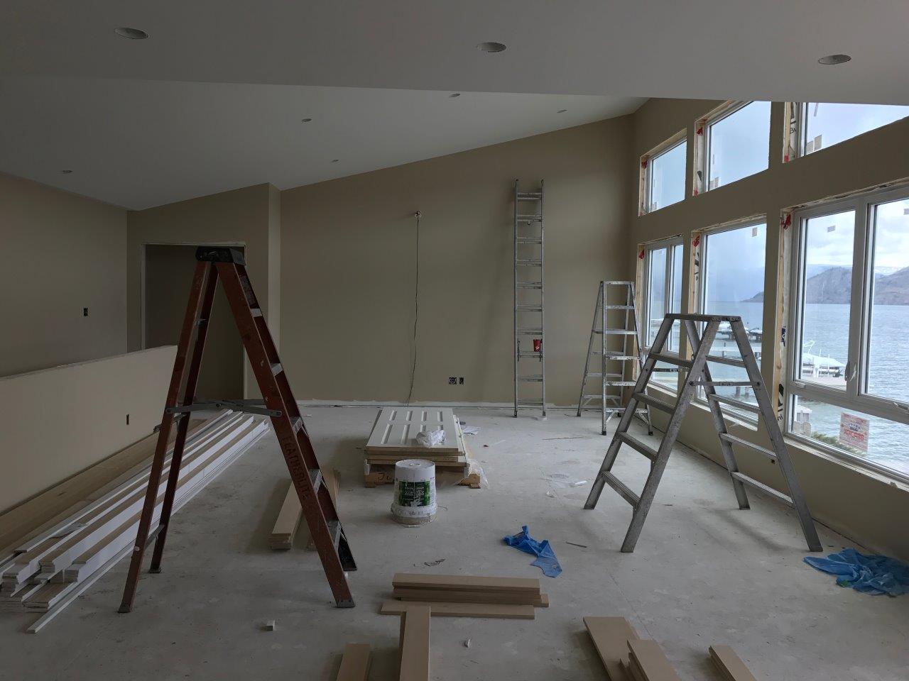 It has been a very long time since the last update. The primary reason is because of the Okanagan Lake flood. Most of the work stopped as we watch the lake rise to a level which was 77cm above its normal max. For a while it appeared that the water table could get high enough to cause water to enter the lower floor, fortunately it never got that high. For the last 6 weeks all of our energy has been going into trying to preserve our wharf and our property. One storm dislodged about 38 feet of our wharf from the pilings and it ended up at a neighbour’s beach. The piece that was removed was the part that attached to the shore so we now have an island only accessible by boat or swimming.