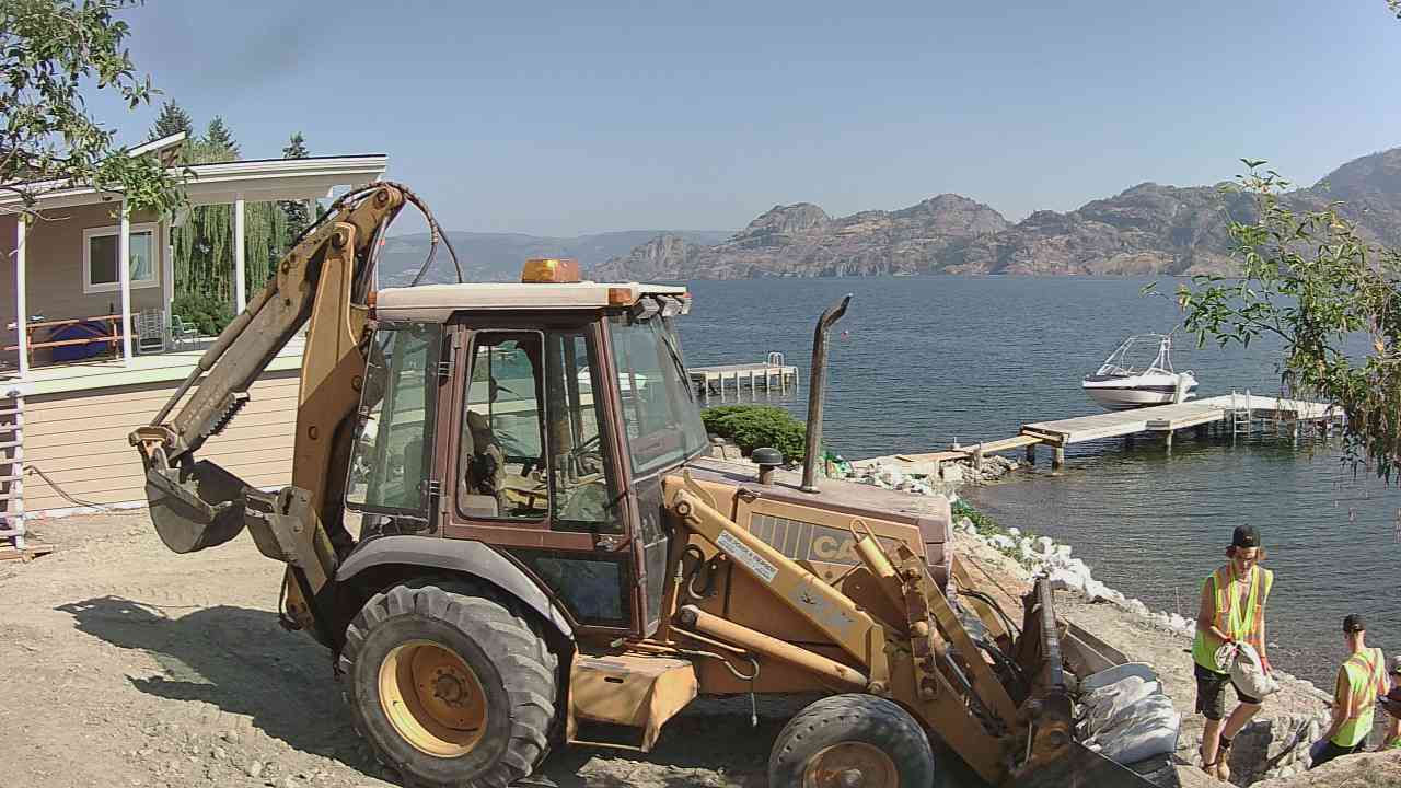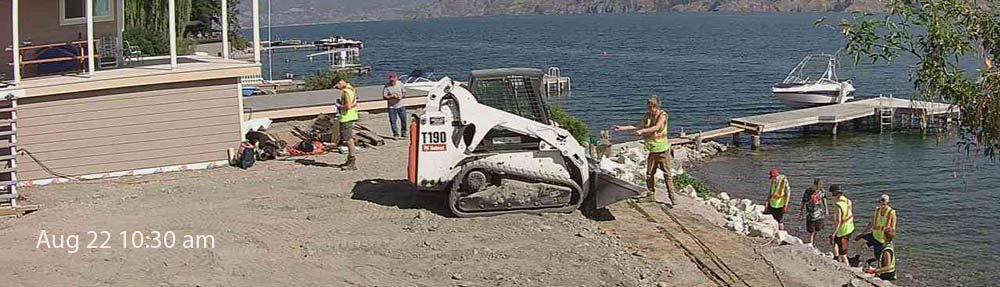 One of our neighbours was able to secure some rip rap rock that was left over from when Summerland had to protect one of their roads. The next day we had two dump trucks worth of the rock put along the shore where the erosion was happening.