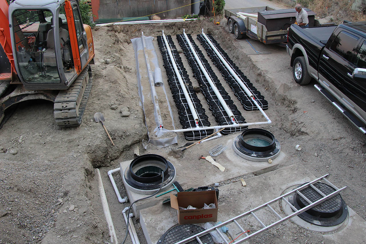 We have been looking at a number of septic system solutions. Building a support structure to allow parking over the field proved to be very expensive. We also considered connecting into a communal septic field down the road. However, getting the pipe from our place to a holding tank would be difficult. We are currently pursuing an approach where the field is done as 4 rows rather than 3 and we use concrete septic and pump tanks. This arrangement would give some more parking and would give access to our yard should we need more visits from dump trucks.
