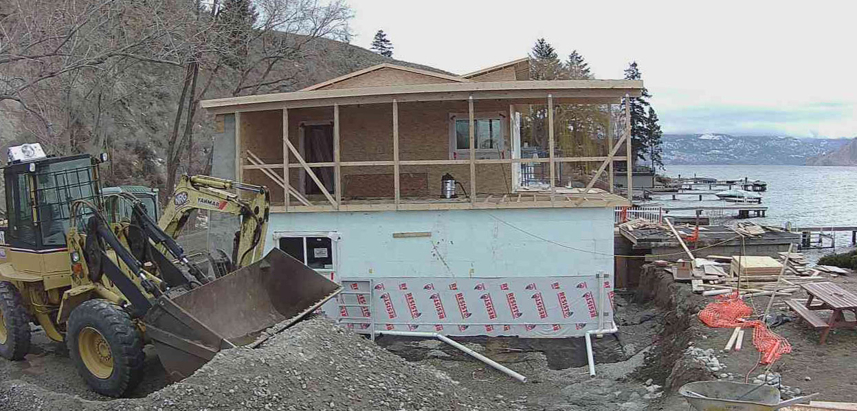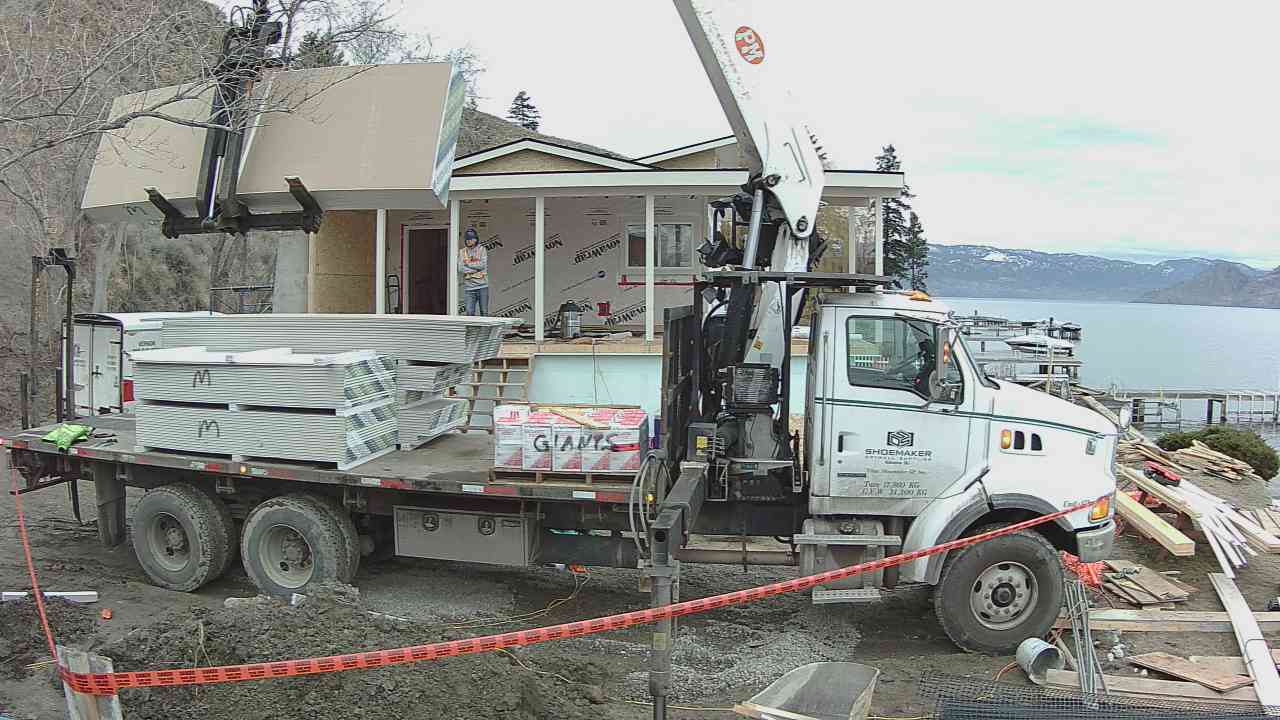 The work continues with the Excavation company now filling the large hole that they dug in the fall. Many dump trucks have been bring in loads of gravel. Our builder’s guys are installing the soffits. Inside the house the plumber has been busy installing the water and sewer pipes. According to our builder he should be finished tomorrow.