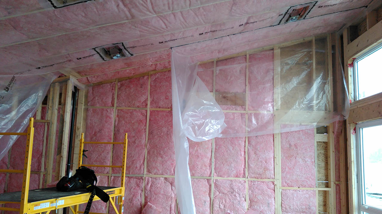 All power, data, cable and telephone wires are in. The insulation people are on-site making the place all pink and warm. The heaters are on and the inside is already feeling much more comfy.