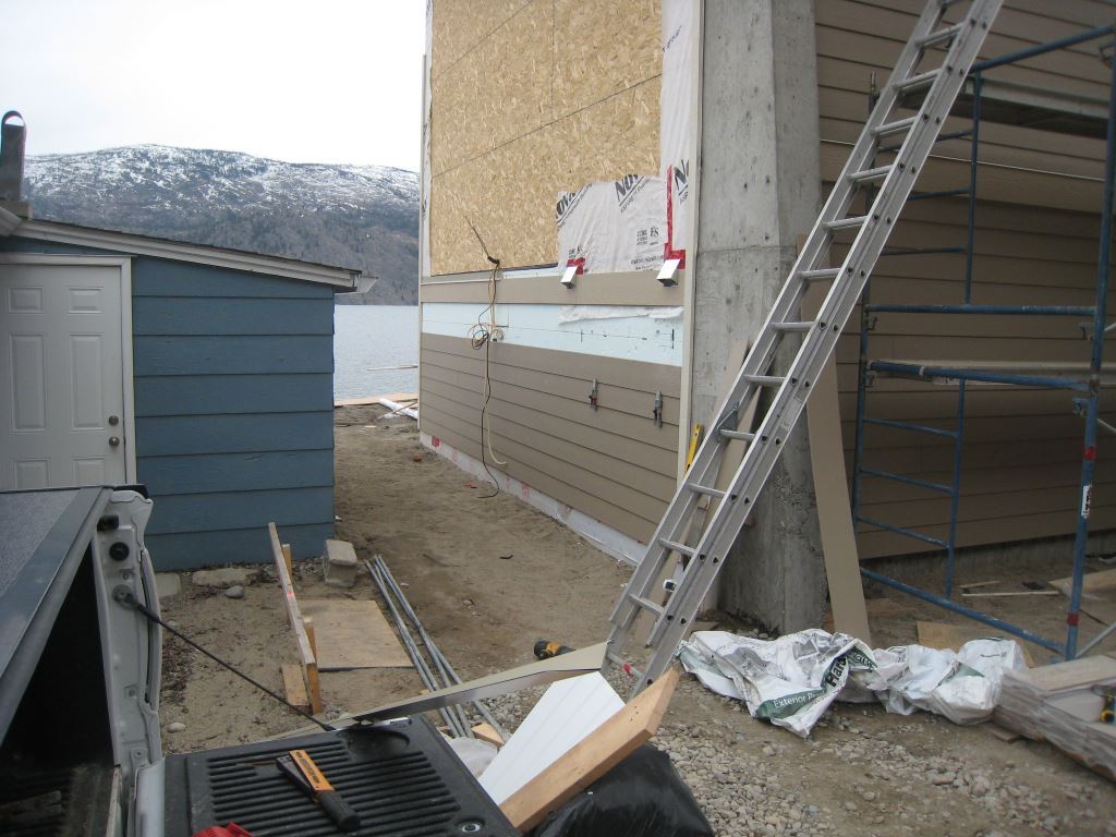 Our builder’s crew have been installing the Hardie plank on the north and west side of the building. We decided to add a belly band to breakup the Hardie plank. The belly band will be painted the same colour as the trim.