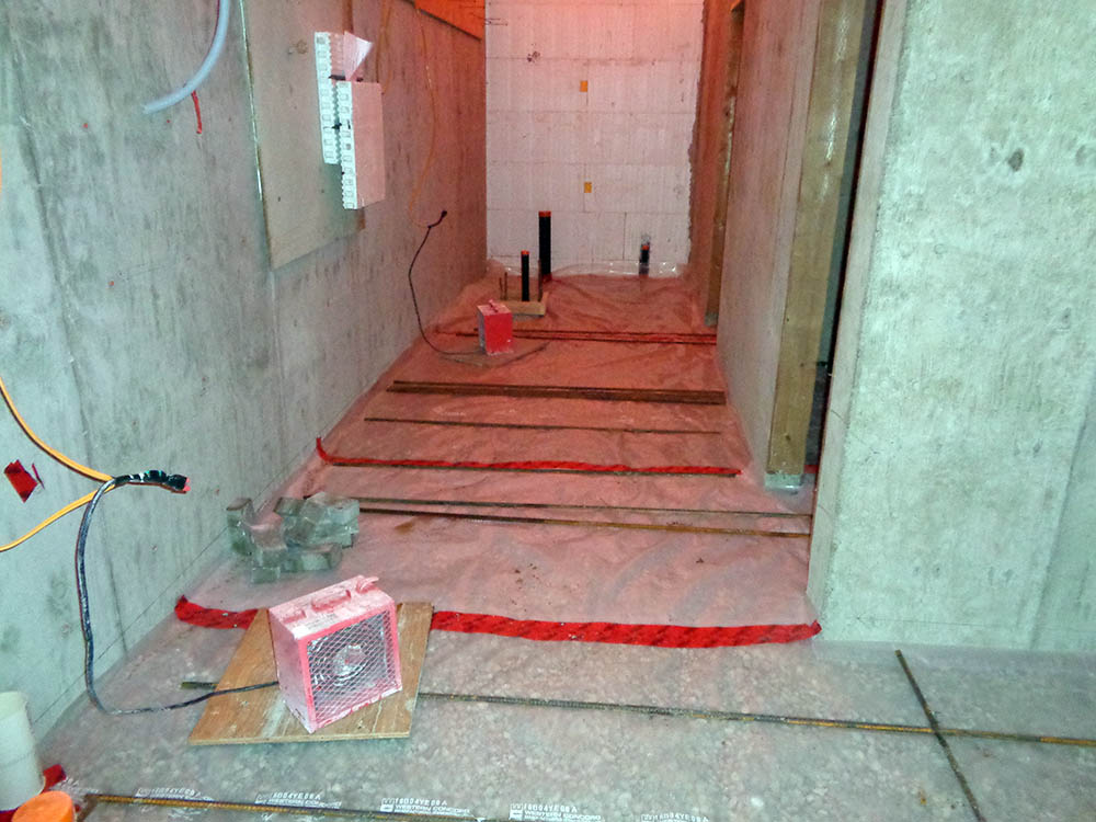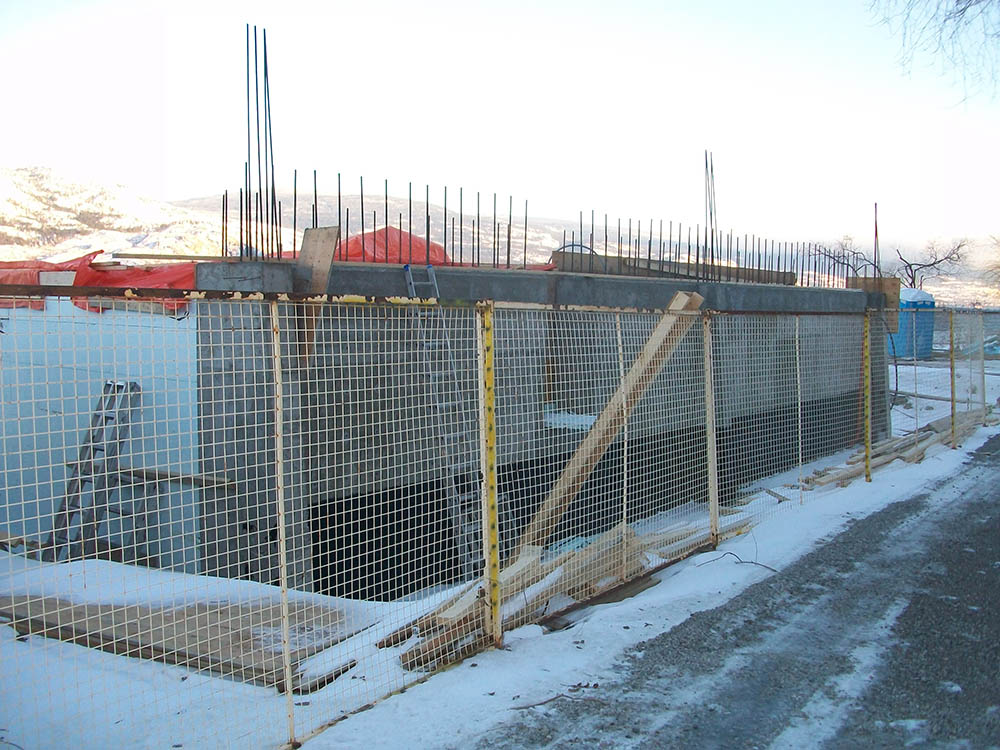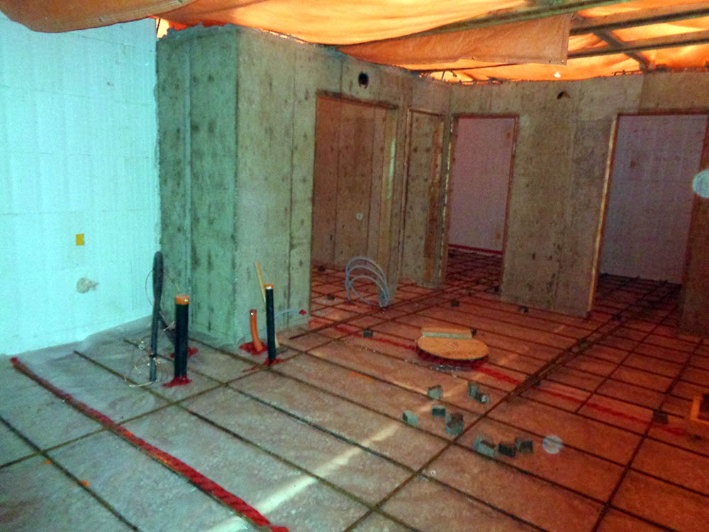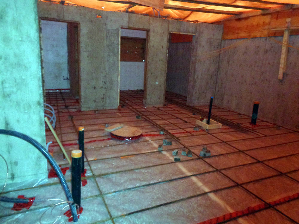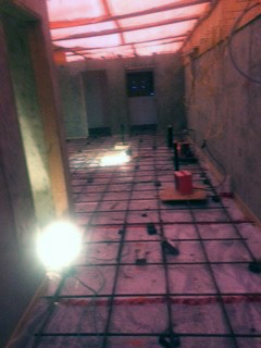 According to our builder the floor is curing nicely and he has started building the support structure for the pouring of the ceiling concrete. However, there is no evidence of anything happening from the outside. We will try to get our builder to send a picture of what is happening on the inside.