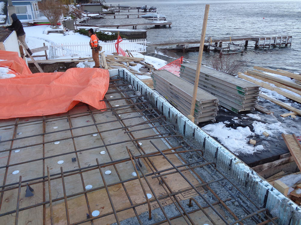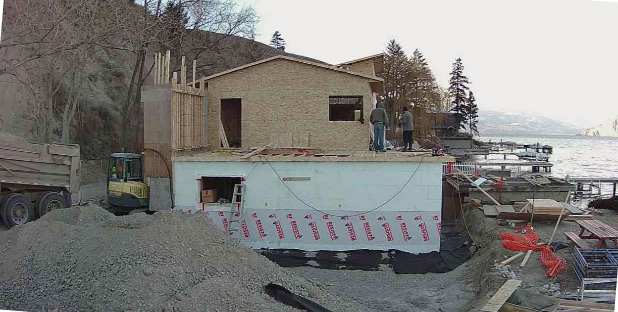 Our builder put the second storey floor in place and has started working on the form for the top section of the retaining wall. Unfortunately the rebar people were not available this week so the form cannot be completed. It would have been good to have it done because the weather is expected to warm up considerably at the end of this week.